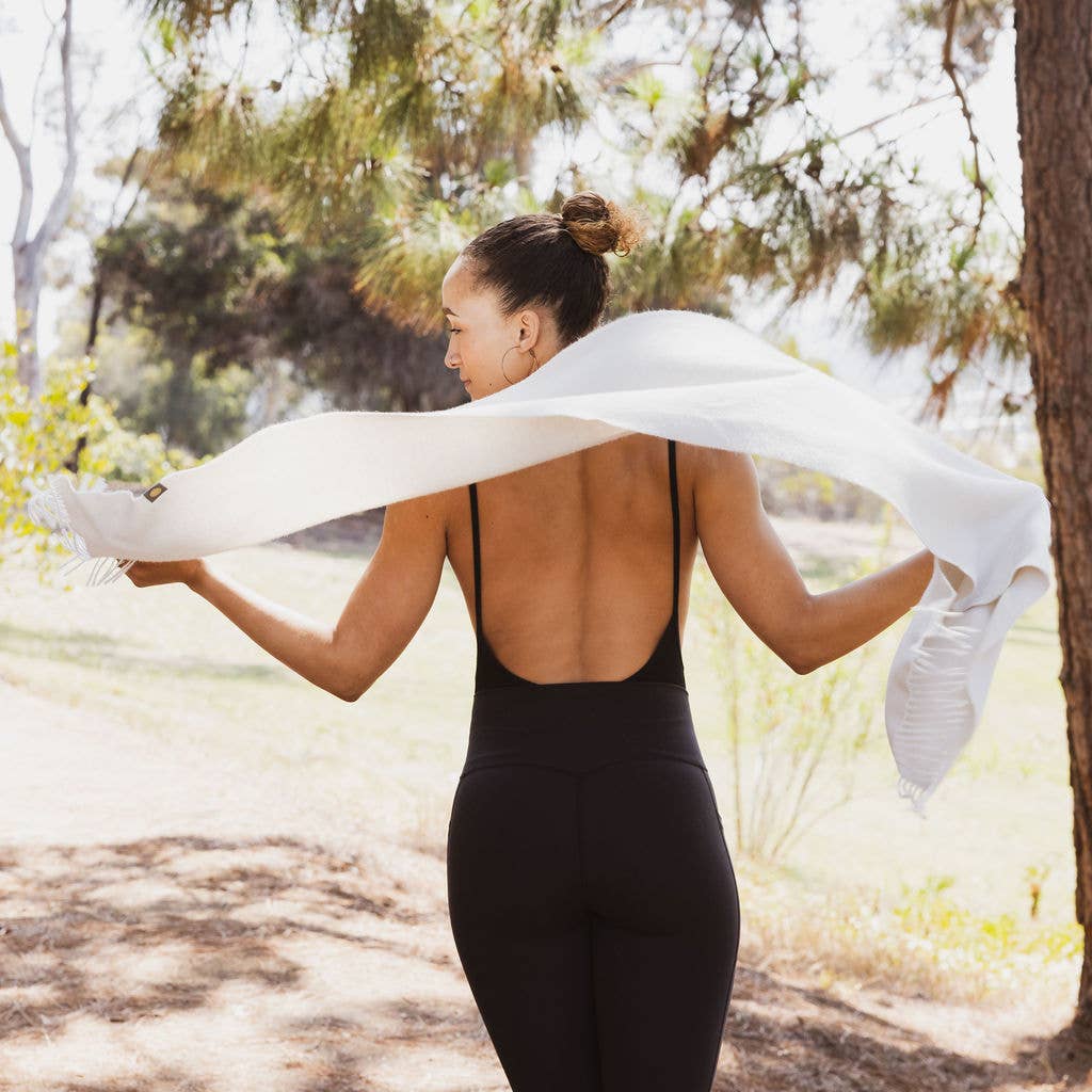 Timeless and elegant, the Porcelain Baby Alpaca Scarf features a clean ivory tone that complements both classic and contemporary wardrobes.