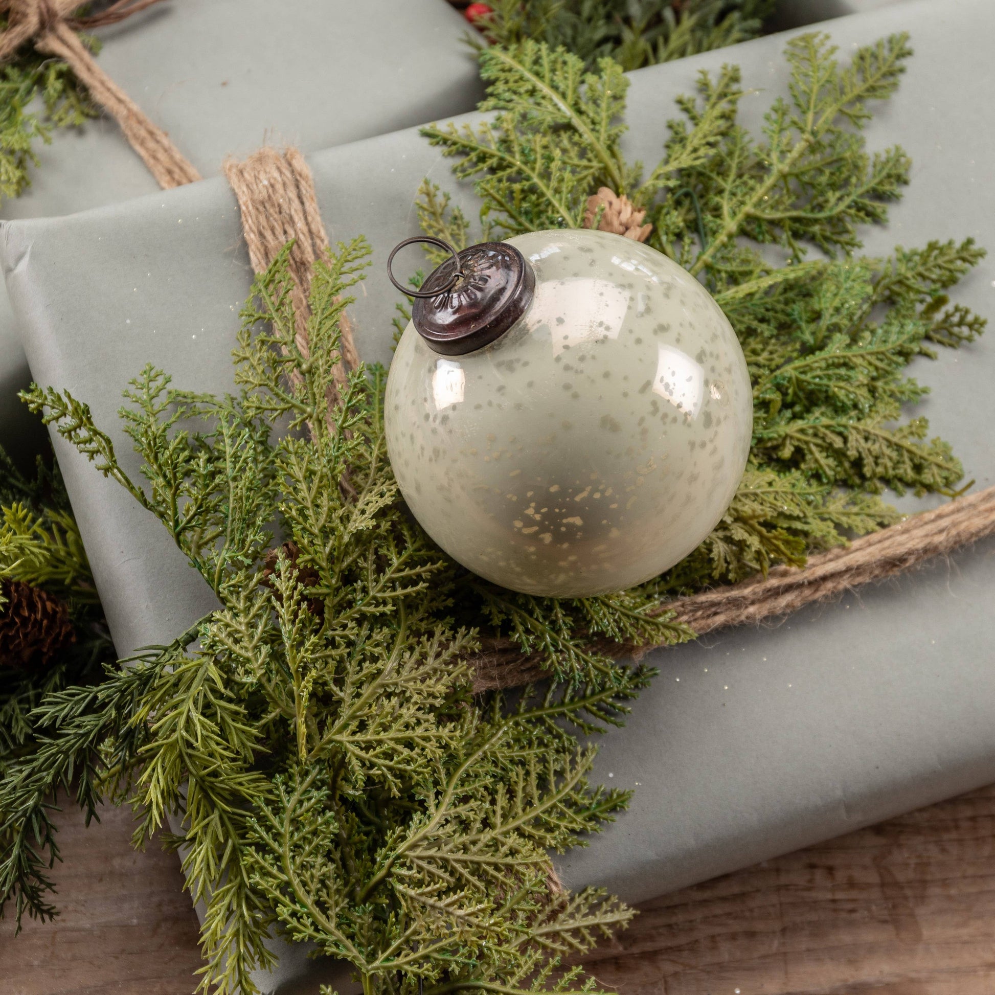 4" White Kugel Ornament. Crafted from high-quality glass, this ornament is designed to add a touch of winter magic to your Christmas tree decoration.