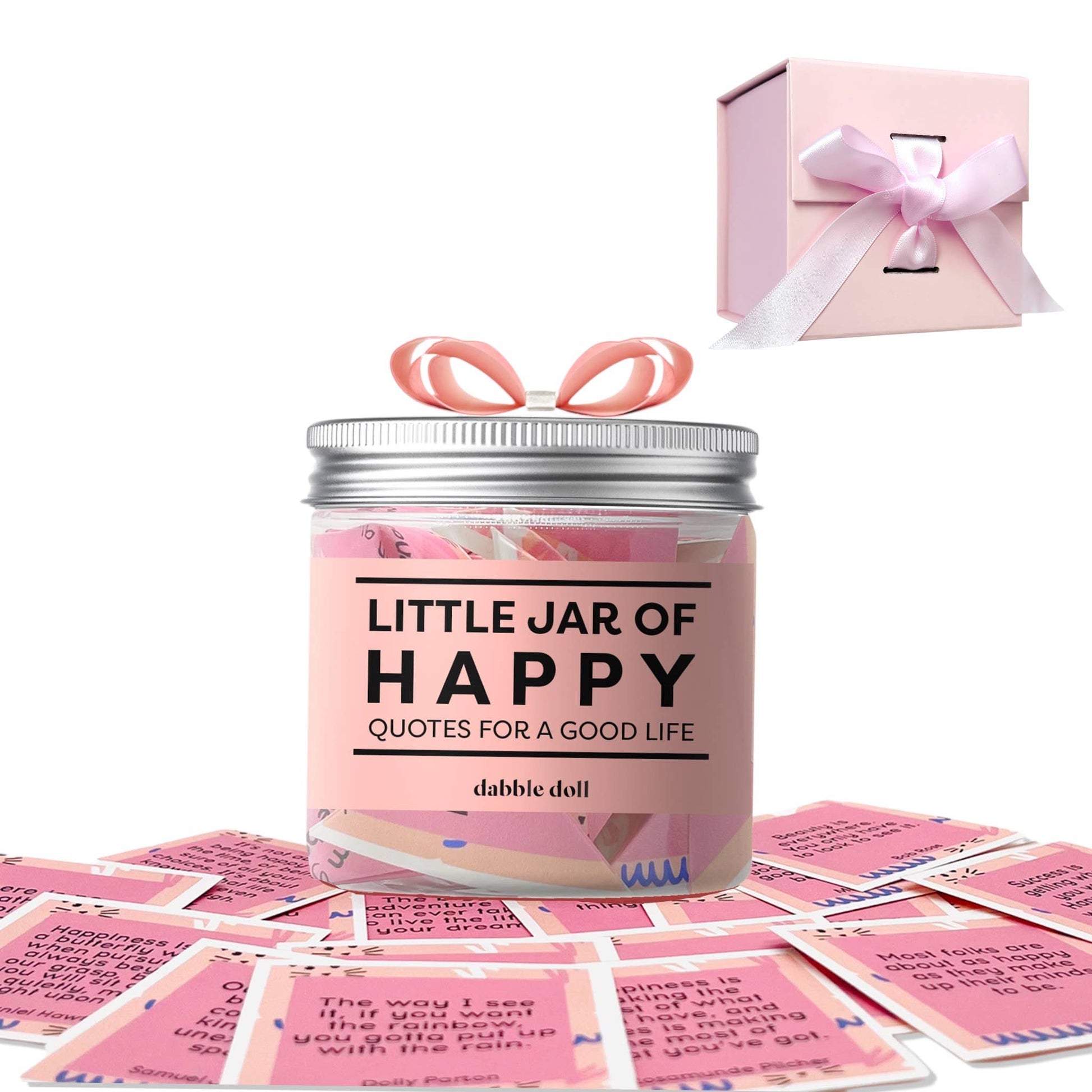The Little Jar of Happy is a joyful, uplifting gift designed to brighten someone’s day. Each jar is filled with 30+ hand-cut, heartwarming quotes, ready to be pulled out whenever a little boost is needed.